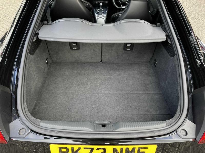 - Alcantara/leather with embossed "S line" or "S" logo on the front seat backrests